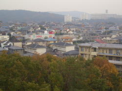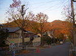 写真左の山は道樹山、 右の写真の奥の建物は高森台中学です。
