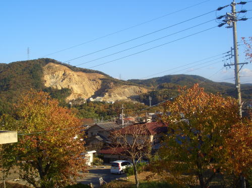 採石場の左に道樹山が続く 山は道樹山です。