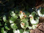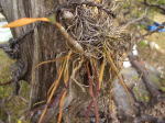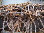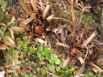 これだけ見てもお分かりならないことでしょう。 平鉢にビッシリ根を這わしている「シダ」です。 右側の写真は11月後半までこの根(茎?)から鉢を覆い隠すように生えていた葉です。 春遅く柔らかな緑が萌え出でてきた時に再び紹介しましょう。