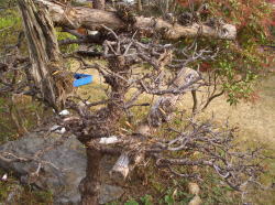 鳳来寺から頂いてきました。 春5月ごろでしょうか、白い小さな花を咲かせます。 ほとんど水のやらないのに、よく枯れないものだと感心します。 大きな写真は枯れた赤松の枝にぶらさげたところです。
