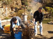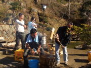さて、餅つきです。 隣のWさん宅から使わないからと頂いた臼が25日持ち込まれ、本年は2つの臼で搗く事になり、忙しい場面もありました。