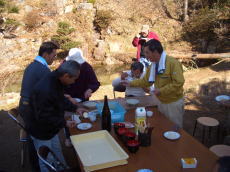 何度か書きましたが日吉・深沢の地は盆地なので放射冷却によって周辺より気温が下がります。(24日、前日より餅つきの仕込みにいかれた方は零下の体験をされ、夜中に寒くて起されたと言っておられました。25日の夜