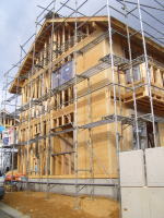 夫婦連れと思われるところが遅れていると思っていましたら、知らぬ間に一番初めに外壁や窓枠の取り付けが始まりだしました。 夫婦の協働作業が効果を表しているのでしょうか。